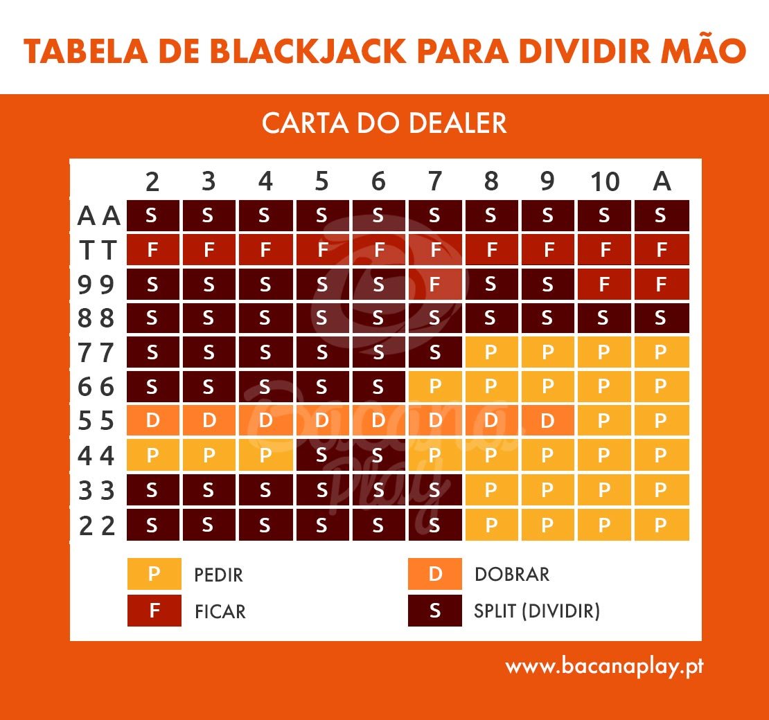Estratégia Básica de Blackjack: Tabela de Blackjack para Dividir Mão