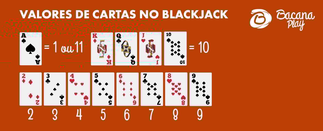 Em qualquer jogo de blackjack, as cartas apresentam os seguintes valores: