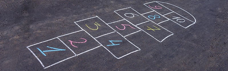 Mas adiante! O jogo da Macaca consistia num percurso que tinhas de fazer ao pé-coxinho e saltando por cima de uma pedra que lançavas a cada uma das casas numeradas (vê a imagem).