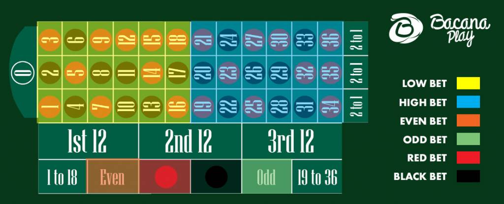 Onde está, então, a vantagem da casa neste tipo da apostas? No zero (0), pois claro! Sempre que a bola cai no zero, o casino recolhe as apostas dos jogadores em todas os seguintes tipos de aposta: