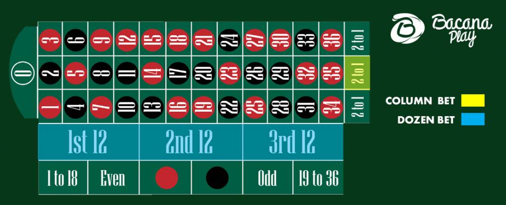 Mas nem só de apostas de 50/50 vivem as apostas exteriores da roleta. Para além destas apostas, com prémios de 1 para 1, existe ainda um outro conjunto de apostas com prémios de 2 para 1. Ou seja, onde o prémio pago pelo casino em caso de seres vencedor é o dobro do que apostaste.