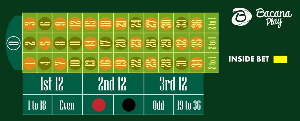 Se nas apostas exteriores, as probabilidades dos jogadores são, em todas elas, consideravelmente altas, nas apostas interiores o caso muda de figura. Completamente! Nas apostas interiores da roleta, as tuas probabilidades de acertar são consideravelmente mais baixas. No entanto, os prémios também são incomparavelmente superiores.