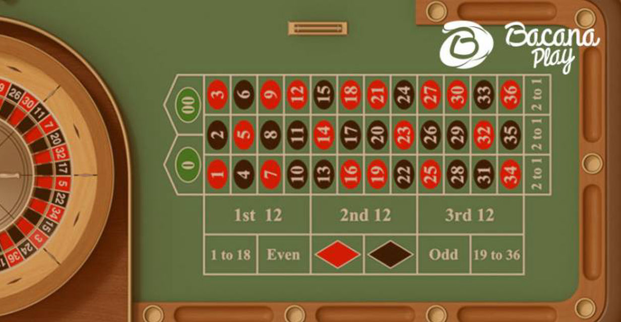 A roda da roleta americana contém 38 bolsas numeradas, entre 0 e 36, além de um duplo zero (00) adicional. Destes, 18 números da roleta são pretos. Outros 18 números da roleta são vermelhos. Enquanto ambas as bolsas número zero são verdes e em polos opostos da roda.