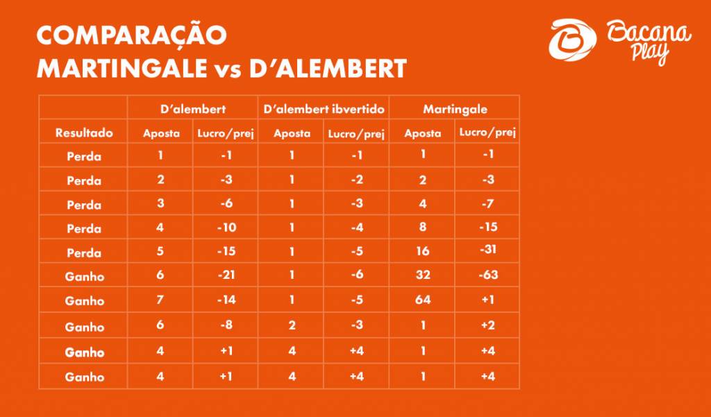 Assim, a estratégia D’Alembert invertida consiste em aumentar o valor da aposta quando se ganha e em diminuir o valor da aposta quando se perde.