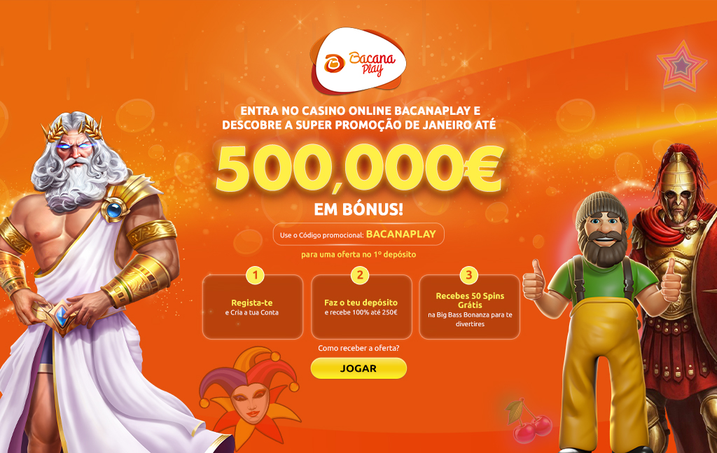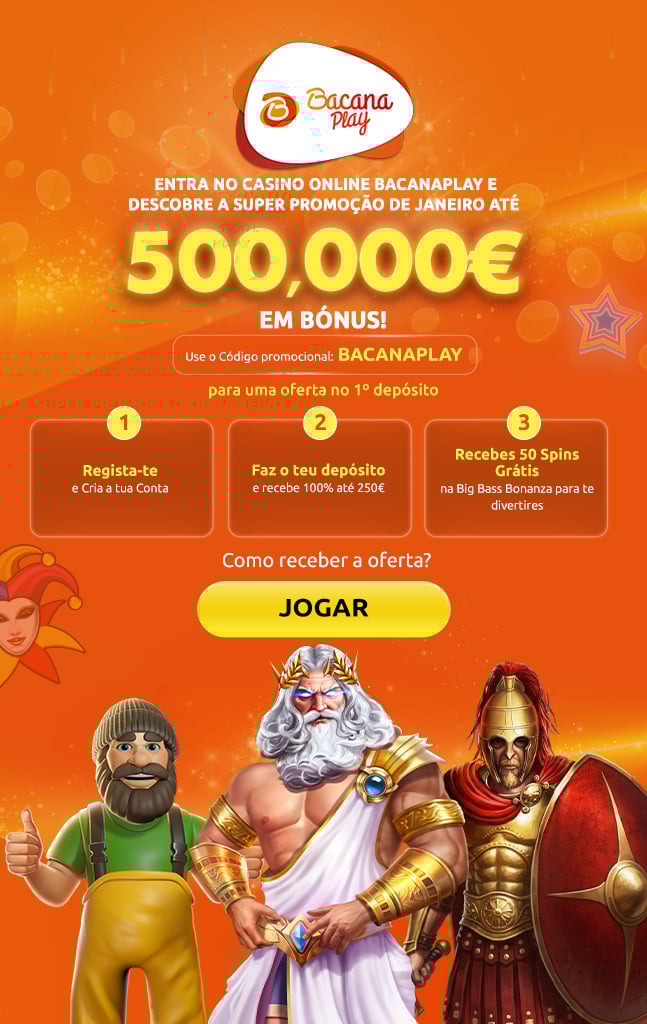 Os bónus são creditados automaticamente mediante o 1º depósito. Podes pedir para cancelar. Estas ofertas estão disponíveis apenas para o primeiro depósito, e consistem em 50 Spins Grátis na slot Big Bass Bonanza, no valor de 0,10€, enquanto o bónus máximo é de 250€. Requisitos de Aposta são de 30x o valor do depósito mais o valor do bónus (apenas contam as slots) em 30 dias. A aposta máxima é de 10% (mín. €0.10) do valor do bónus ou 5€ (aplica-se o valor mais baixo). As spins devem ser utilizadas e/ou os bónus devem ser reivindicados antes de utilizares os fundos depositados.