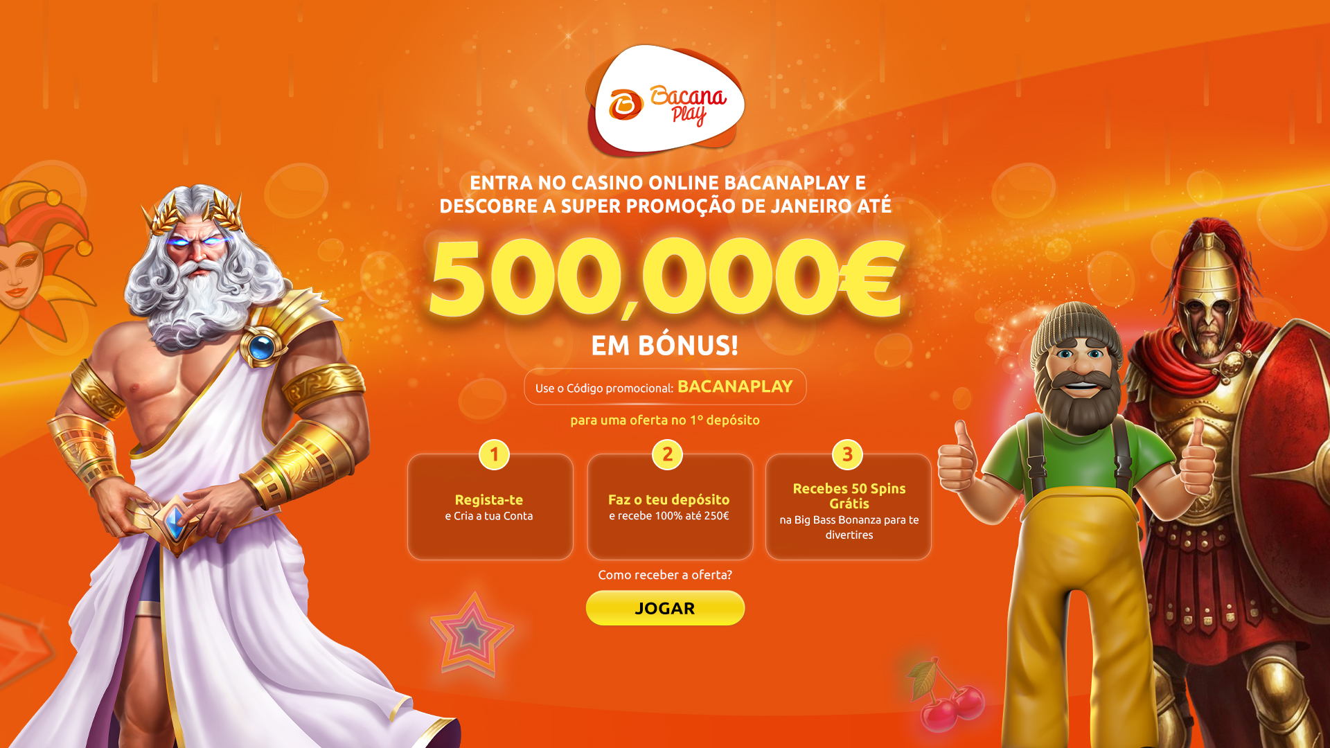 Os jogadores têm de se registar e jogar 50€ nas slots elegíveis para terem a oportunidade de ganhar uma recompensa de Spins Grátis.