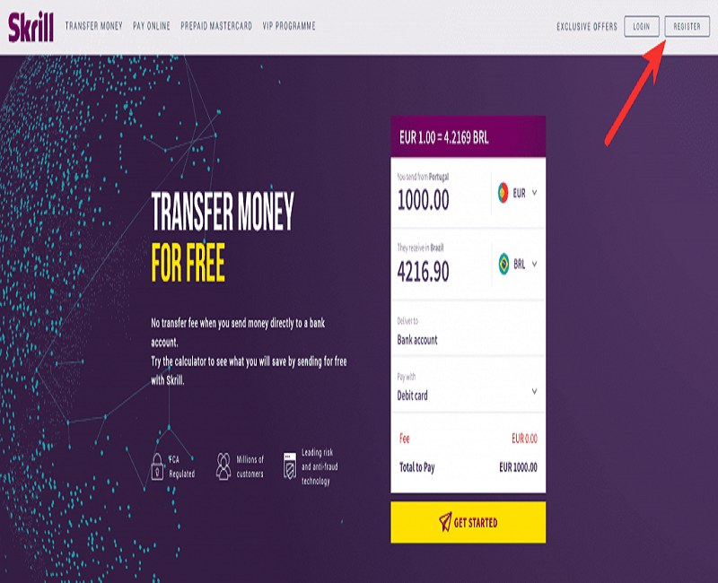 3. O Skrill não cobra taxas por transferires fundos para o Bacana