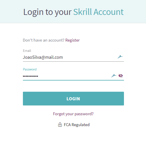 Depois de seguires estes simples passos, serás redirecionado para o site do Skrill onde deverás fazer: